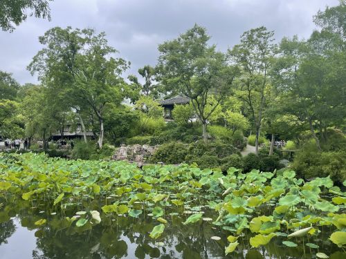 抵达苏州的第一站是拙政园,这座拥有数百年历史的古典园林,以其诗情画意的景色和精妙绝伦的设计闻名于世。一进园门,大家就被眼前的美景所吸引。蜿蜒的小径,曲折的回廊,绿意盎然的植物,池塘中点缀着碧绿的荷叶,仿佛置身于一幅古画之中。