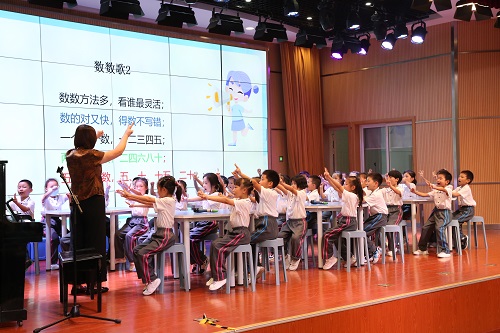 一年级小朋友们在老师的带领和指挥下,向家长们展示学校生活的日常片段。老师们专心地教学、孩子们积极地举手、家长们认真地聆听——构成了一幅美好的画面。