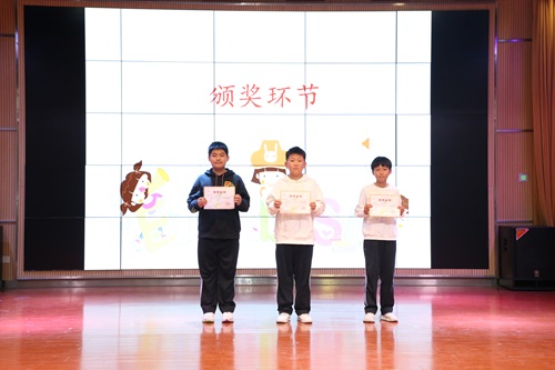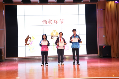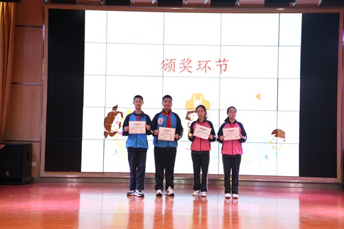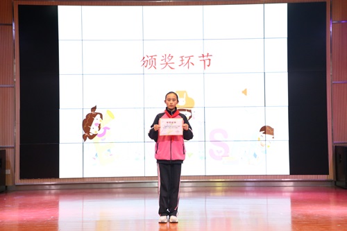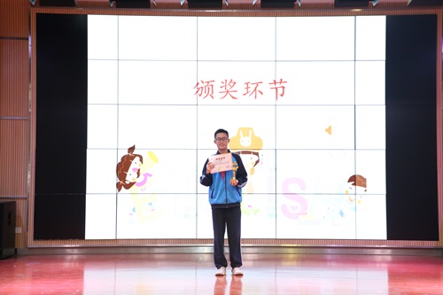 八年级英语备课组长谢小乔老师宣布获奖的个人和班级团体,随后各年级英语备课组长分别为获奖学生和团体颁奖。